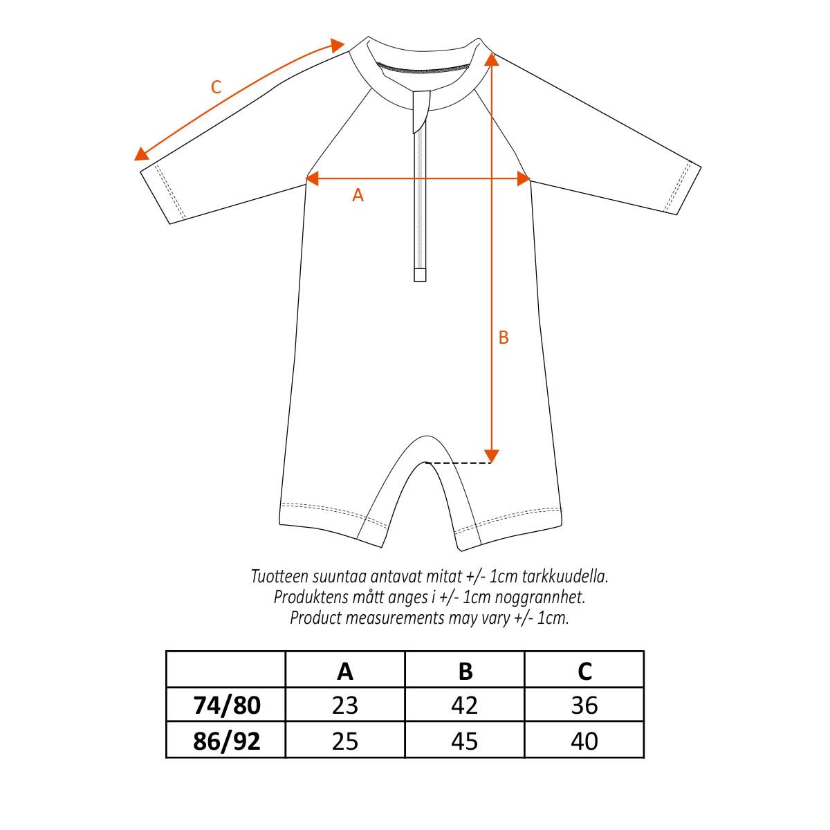 - Lapsen ihoa suojaavat pitkät raglanhihat
