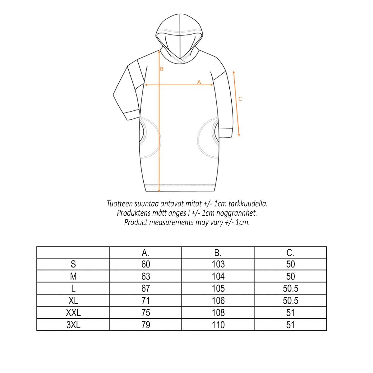 | Pesuohje | 40 °C – Pese samansävyisten kanssa nurinpäin käännettynä, muotoile kosteana, silitys nurjalta puolelta |