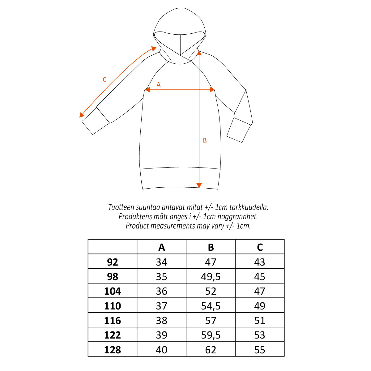 Riemukkaan monivärinen lasten pitkähihainen huppari, jossa on matala kengurutasku, huppu ja pehmeäksi harjattu sisäpuoli. Hupparin lystikkään vauhdikkaalla ja monivärisellä pohjalla on aaltoilevia raitoja ja Muumeja hauskanpidossa.