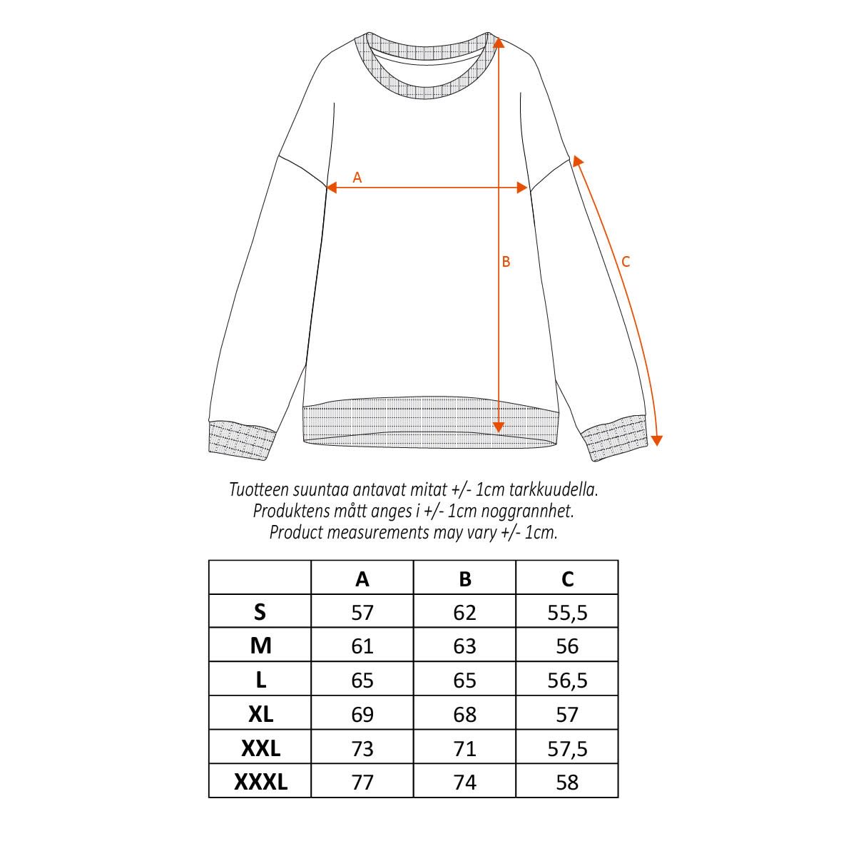 | Pesuohje | 40 °C – Pese samansävyisten kanssa nurinpäin käännettynä, muotoile kosteana, silitys nurjalta puolelta |
