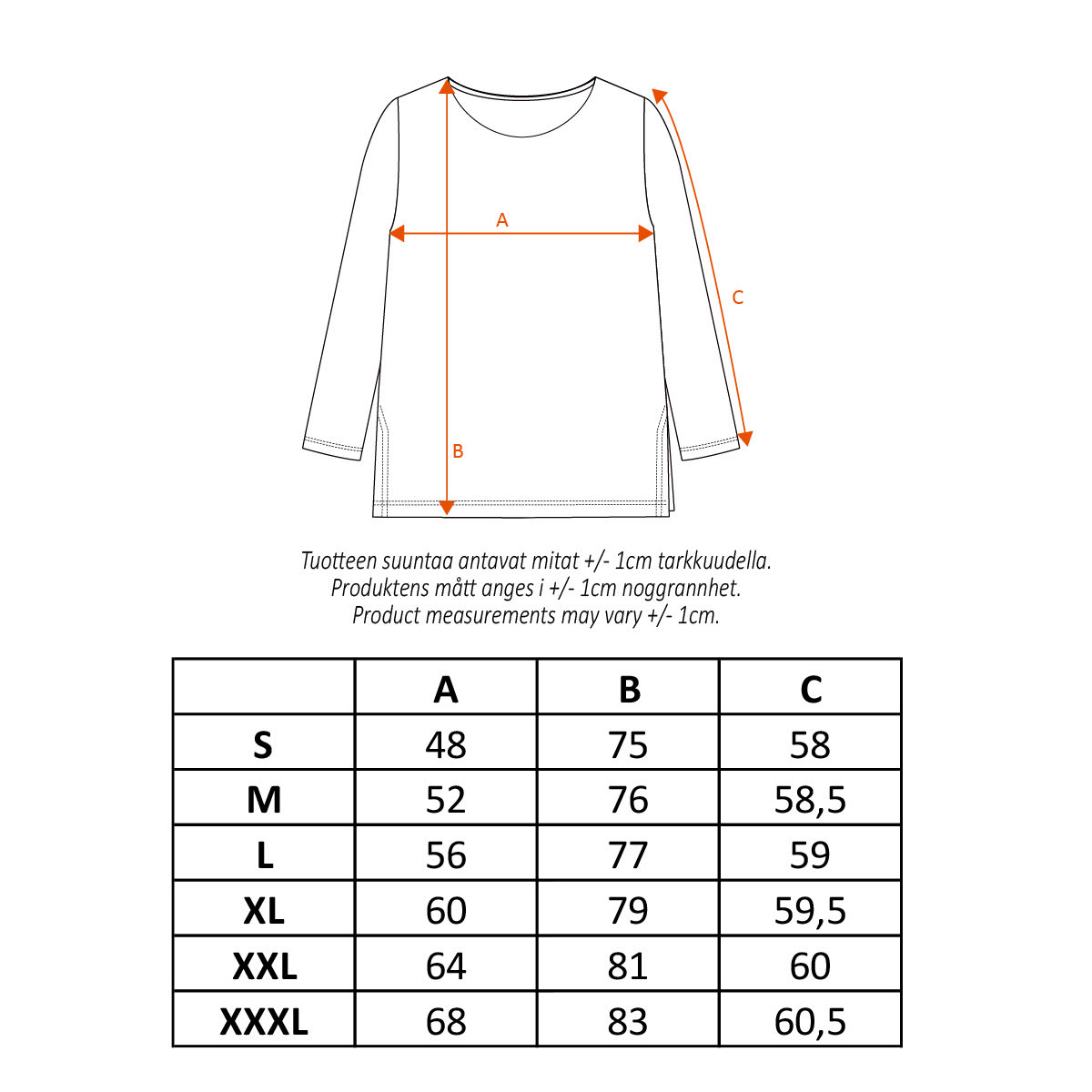 | Pesuohje | 40 °C – Pese samansävyisten kanssa nurinpäin käännettynä, muotoile kosteana, silitys nurjalta puolelta |