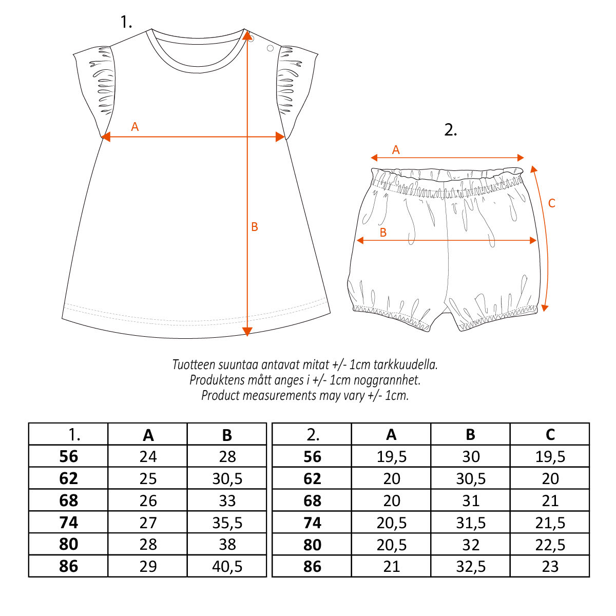 - Lyhyet lahkeet, joustava kuminauhavyötärö sekä suloisesti pussittava malli
