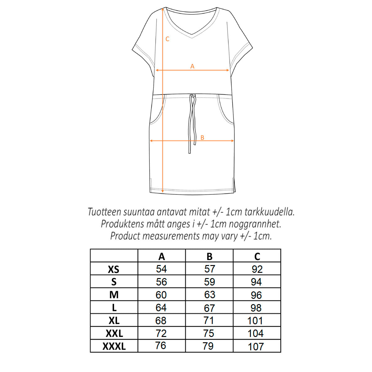 - Vyötäröllä oleva säädettävä kiristysnauha saa mekon istumaan kauniisti