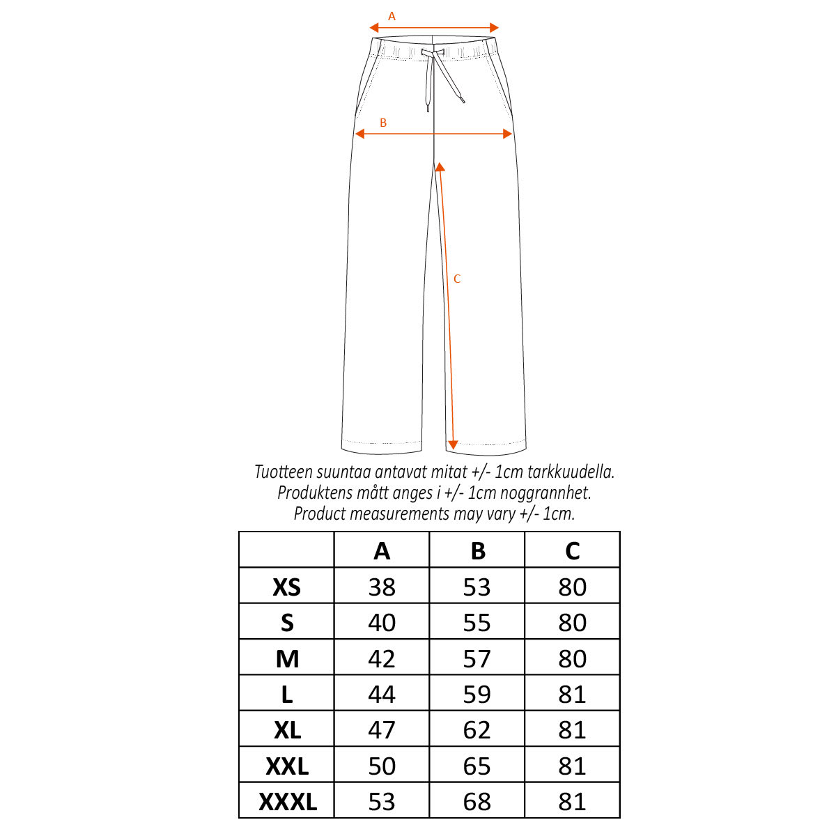 Pesuohje | 40 °C – Pese samansävyisten kanssa nurinpäin käännettynä, ei rumpukuivausta, silitys nurjalta puolelta |